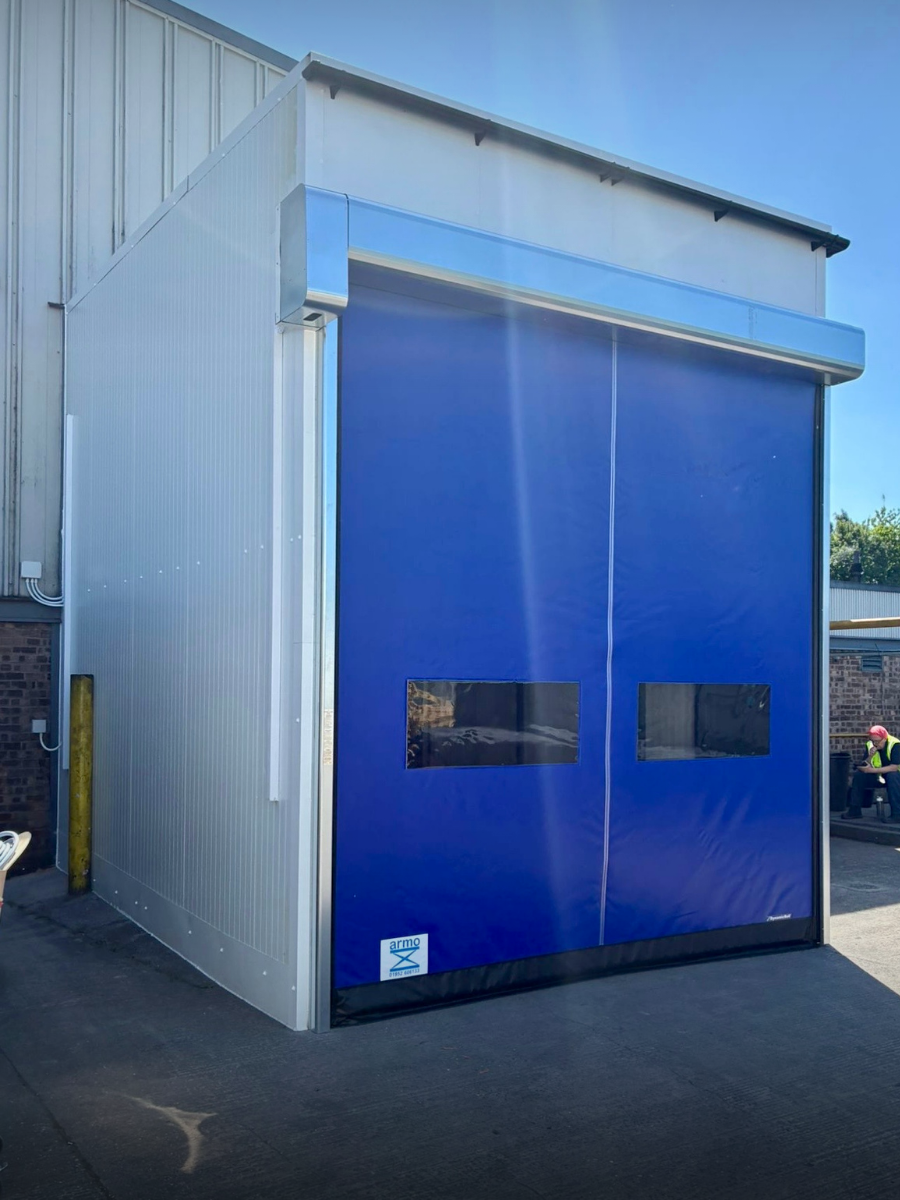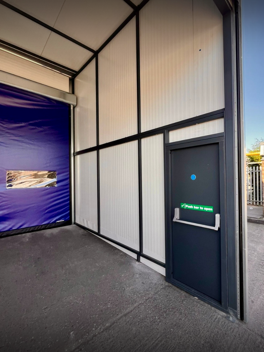 Incorporating high speed doors front and back, interlocked so that only 1 x door can be opened at any time, side pedestrian access steel door, internal lighting and complete enclosure designed by our projects office and installed by our directly employed engineers!