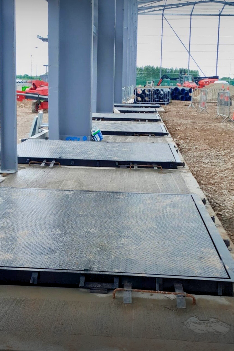 6no. Model ARSL dock levellers installed into pre-cast concrete pits, ready for the final concrete floor pour.